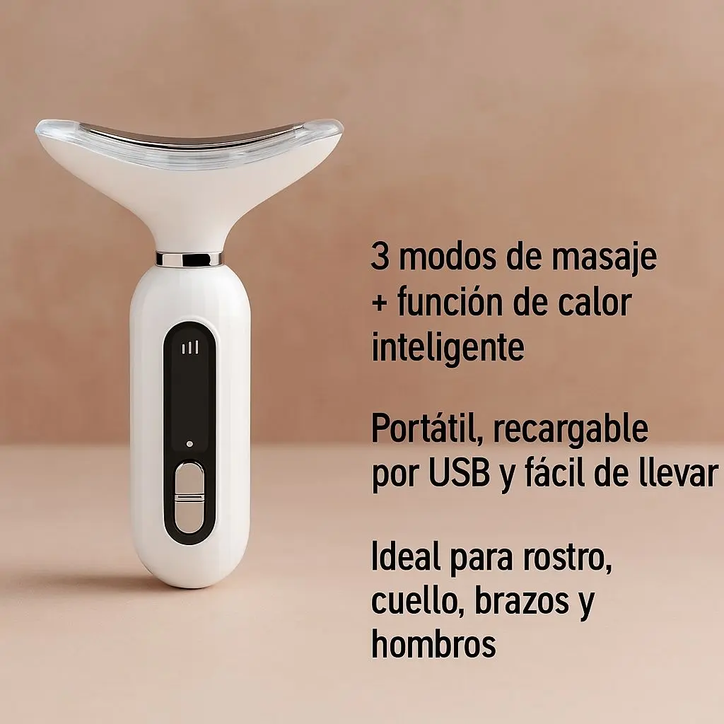 El Masajeador Facial LED con 3 modos + calor inteligente ayuda a que tus serums y cremas se absorban hasta 3 veces mejor.