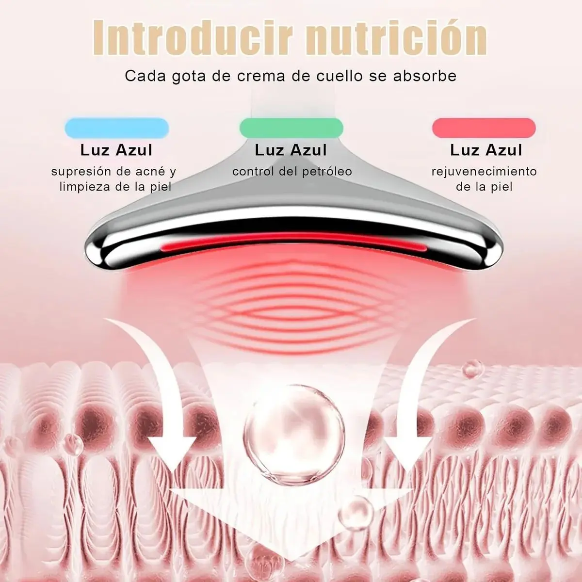 Solución: Con el Masajeador Facial y Cuello LED, el calor + vibración ayudan a que tus cremas penetren profundamente, logrando una piel más hidratada, firme y luminosa.